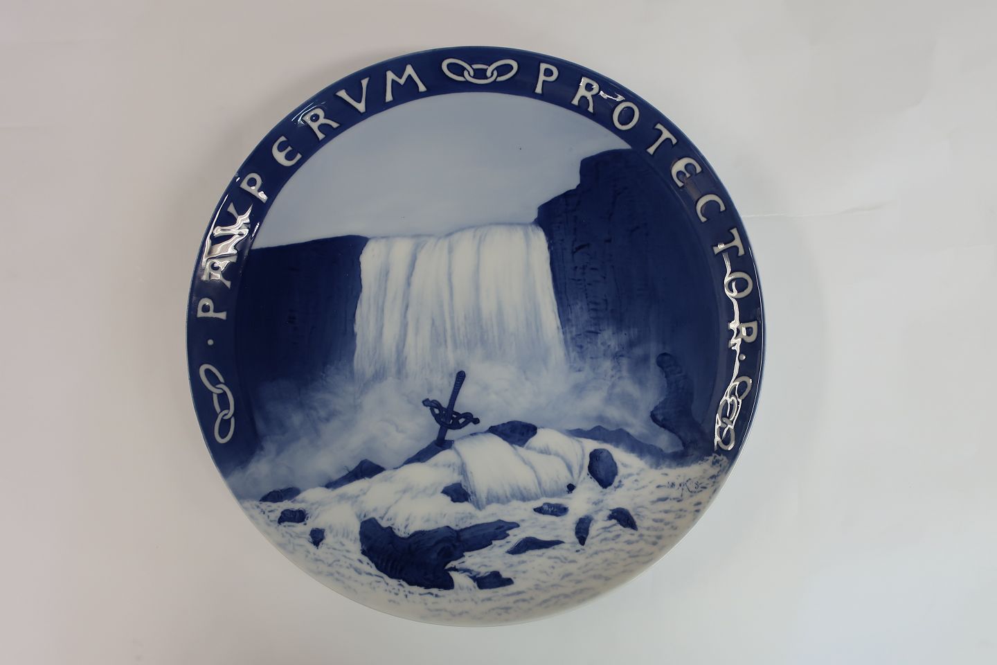 Royal Copenhagen. Mindeplatte #31. Odd Fellow Ordens hospital på Island. Tegnet af Arnold Krog 1899. Diameter 28 cm. (1 sortering)