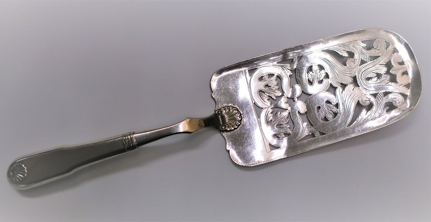 Heinrich Otto, København. Sølv fiskespade (830). Stemplet HO. Længde 30 cm. Produceret 1838.