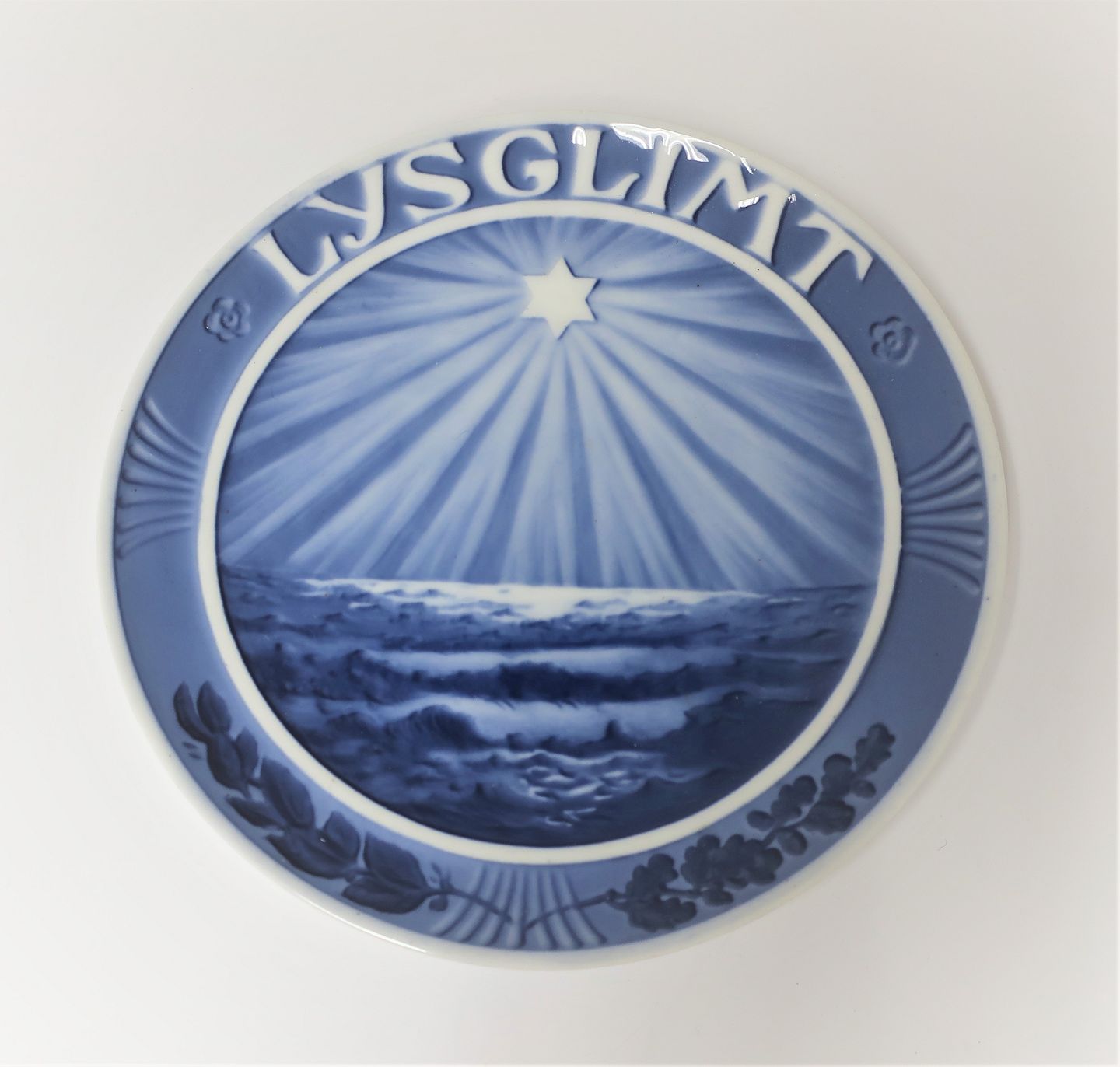 Royal Copenhagen. Commemorative plate # 206. Lysglimt. Star over landscape. 1922. Diameter 19 cm.