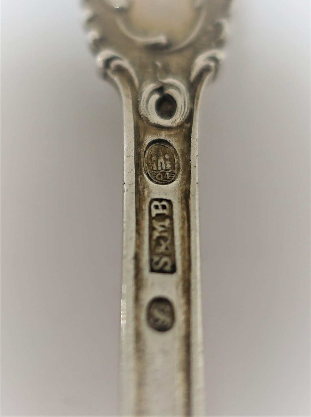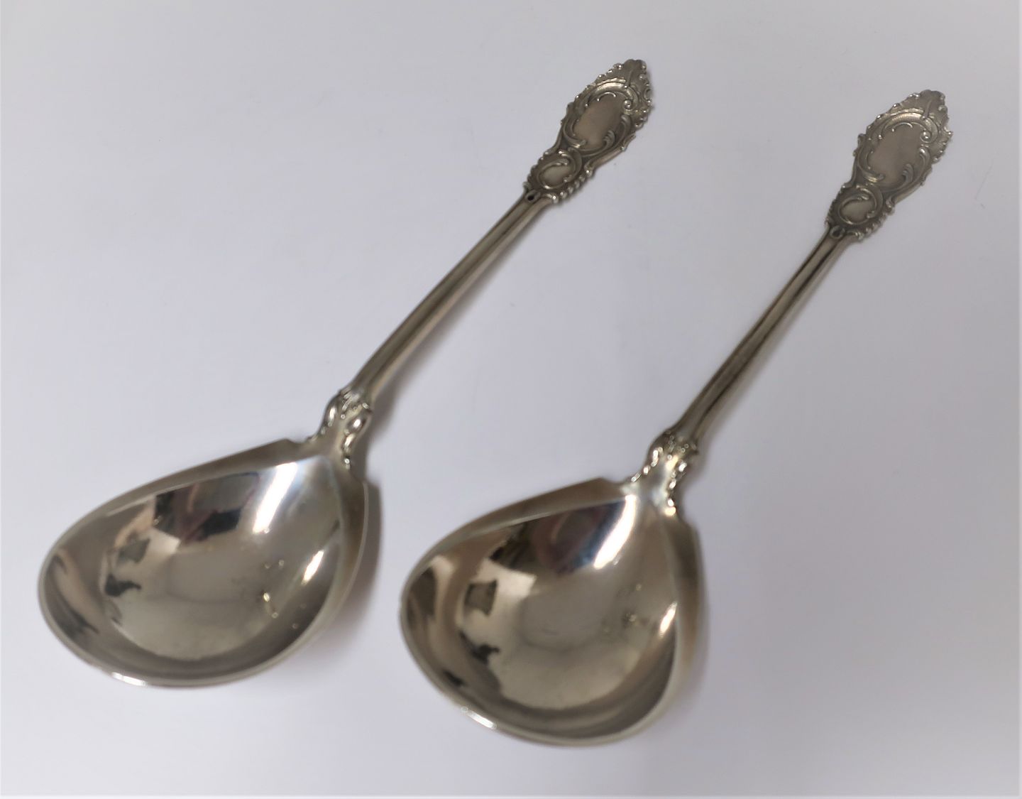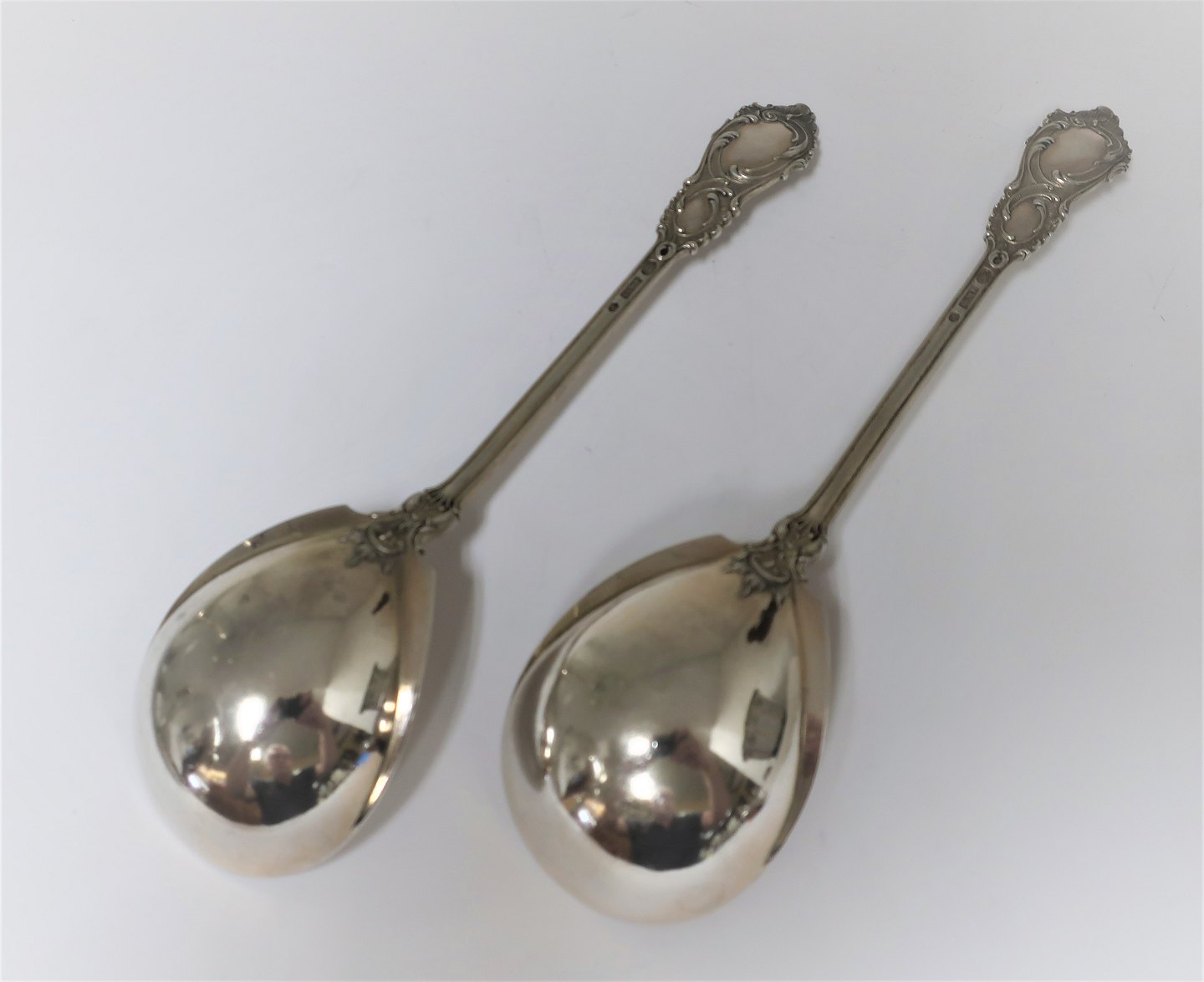 Silver serving spoons. Stamped S&MB. Length 21 cm. A pair. Produced 1904.