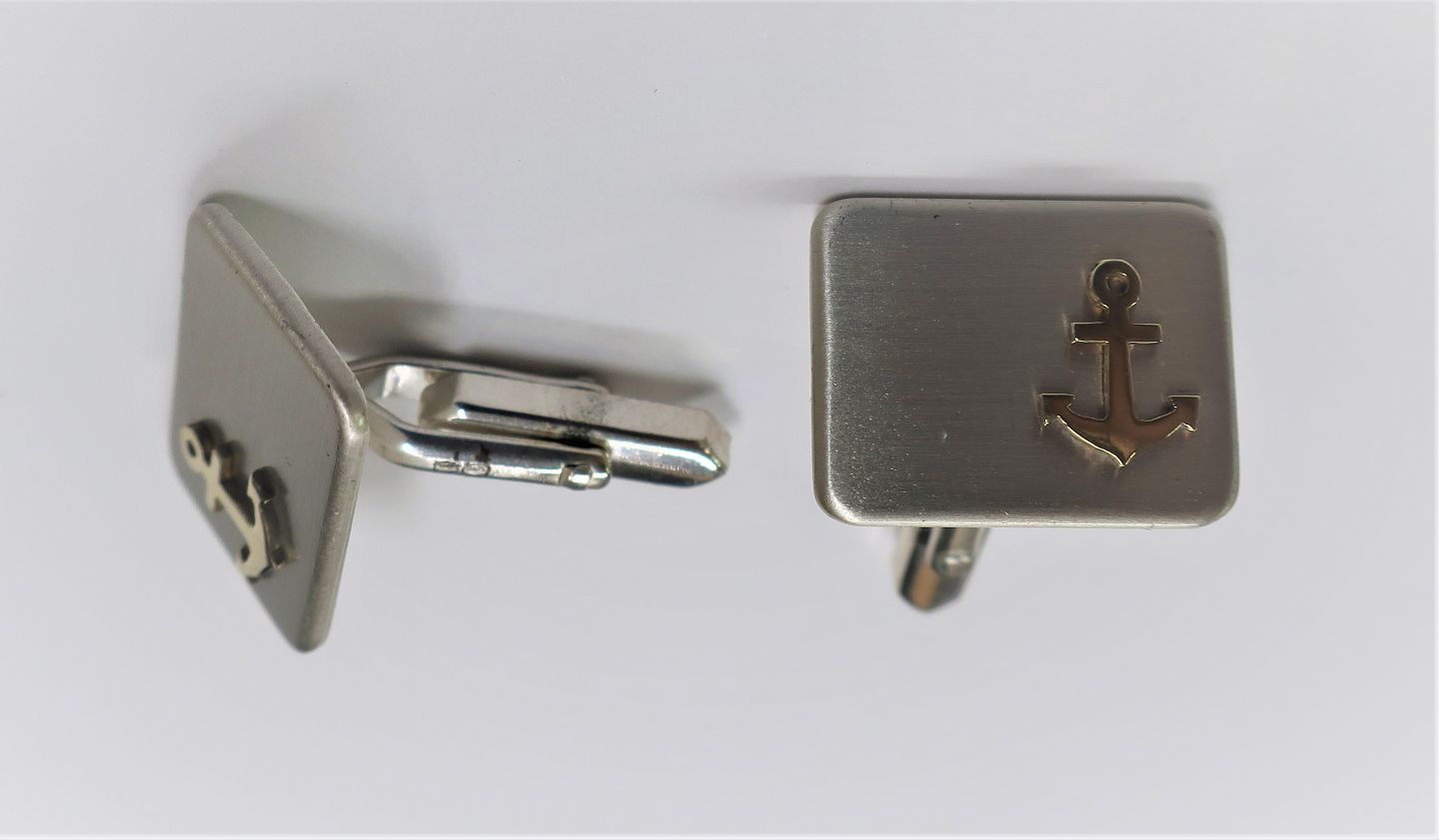 Silber Manschettenknöpfe (835) mit vergoldetem Anker. Länge 20 mm.