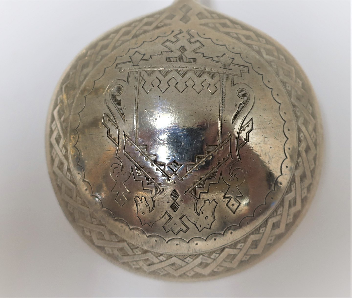 Russisk sølvske. (84). Serveringsske. Længde 17,5 cm. Kraftig kvalitet.