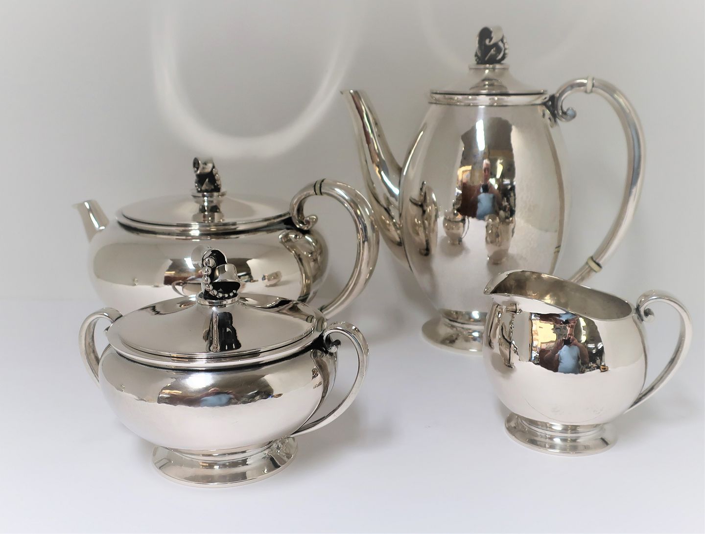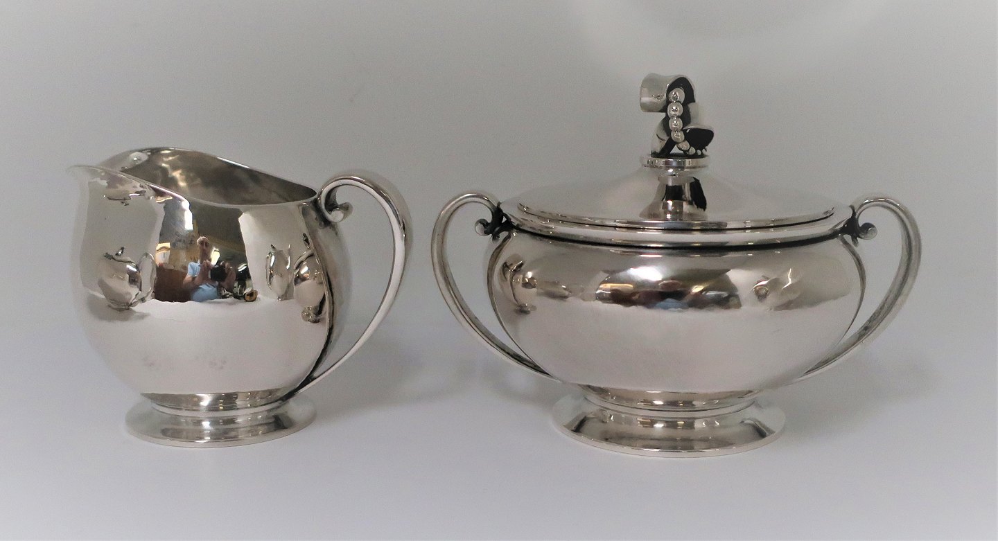 Evald Nielsen. Silver tableware (830), consisting of teapot, coffee pot, cream jug and sugar bowl. Coffee pot, cream jug and sugar bowl produced in 1937 and teapot in 1942.