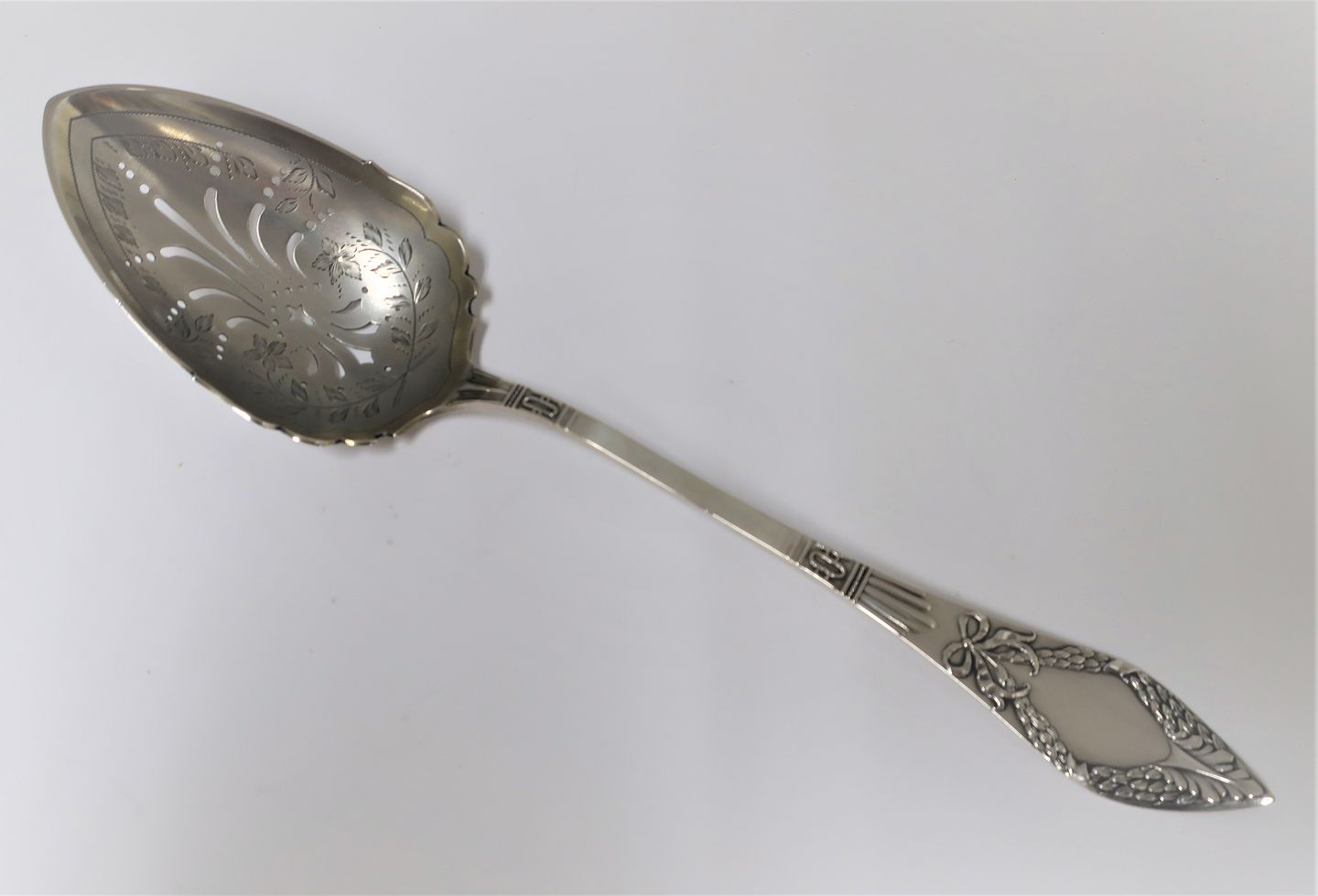 Sølv jordbærske (830). Længde 27 cm. Produceret 1907