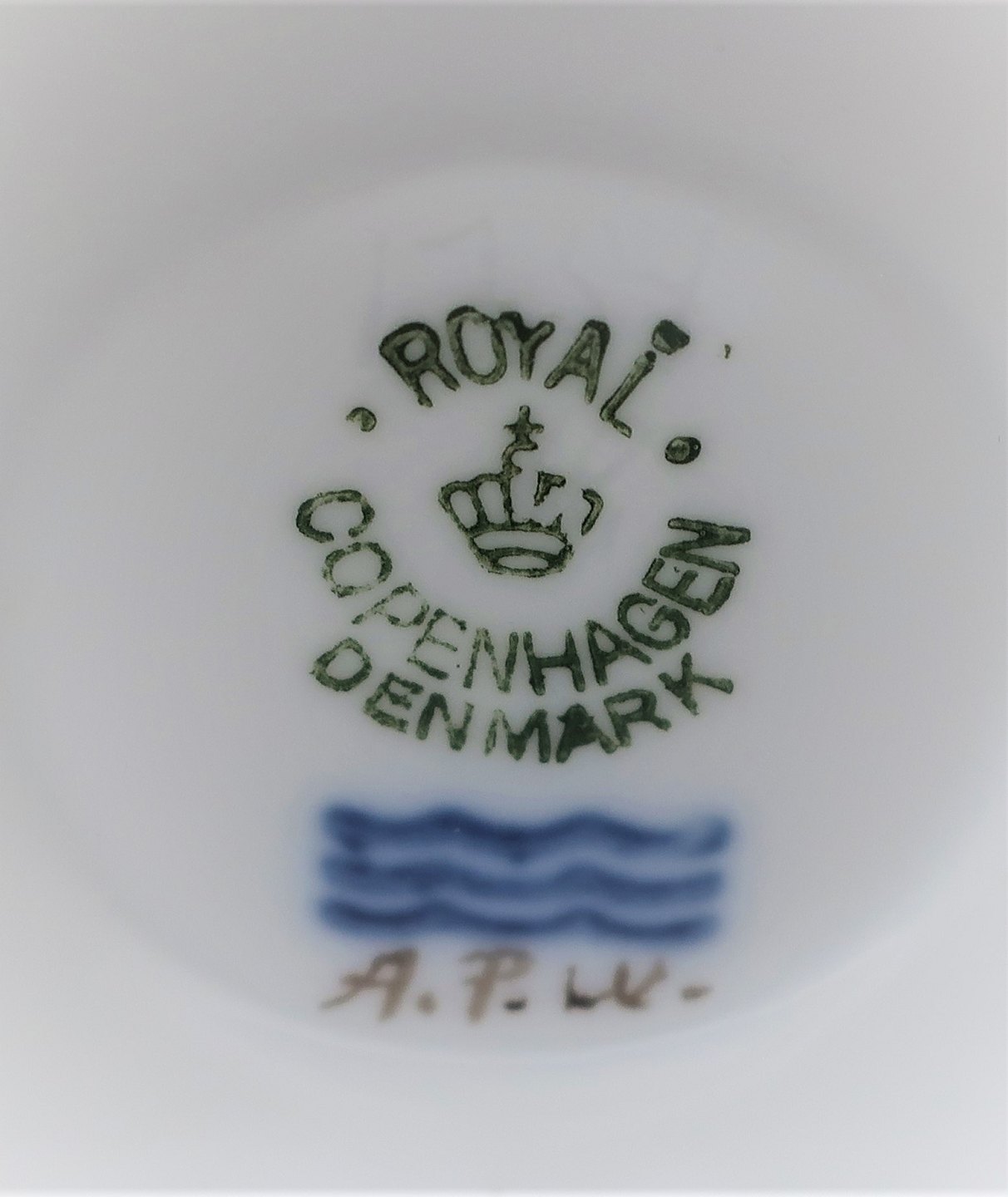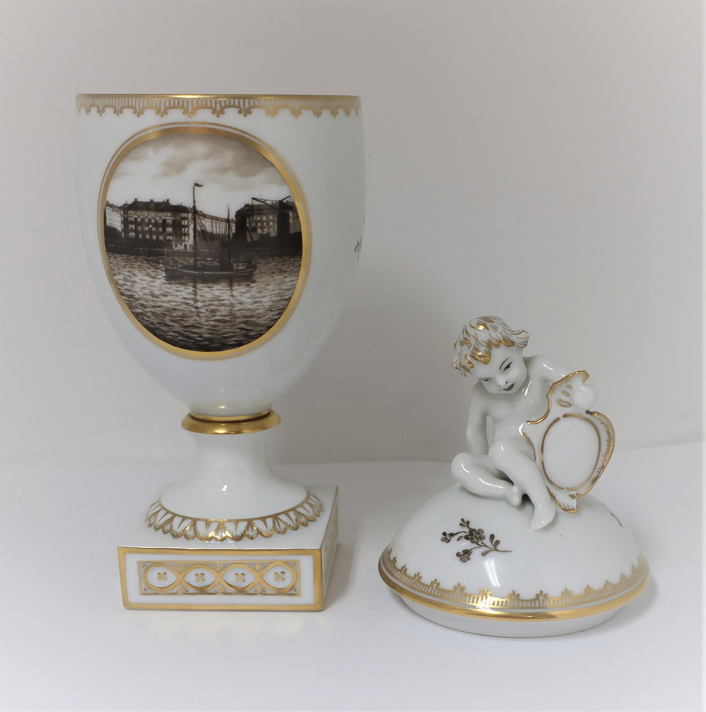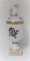 Royal Copenhagen. Lågvase med putti på top. Højde 28 cm. (1 sortering)