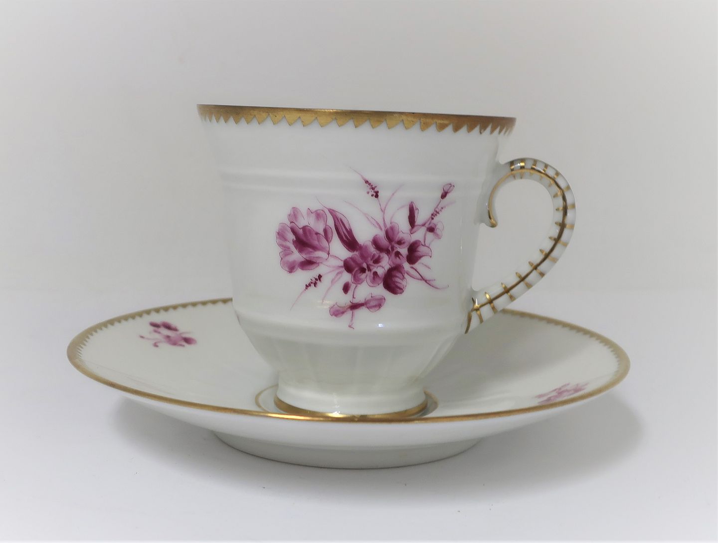 Bing & Grondahl. Hamlet. With purple colored flower and gold border. Coffee cup. There are 10 pieces in stock. The price is per piece.
