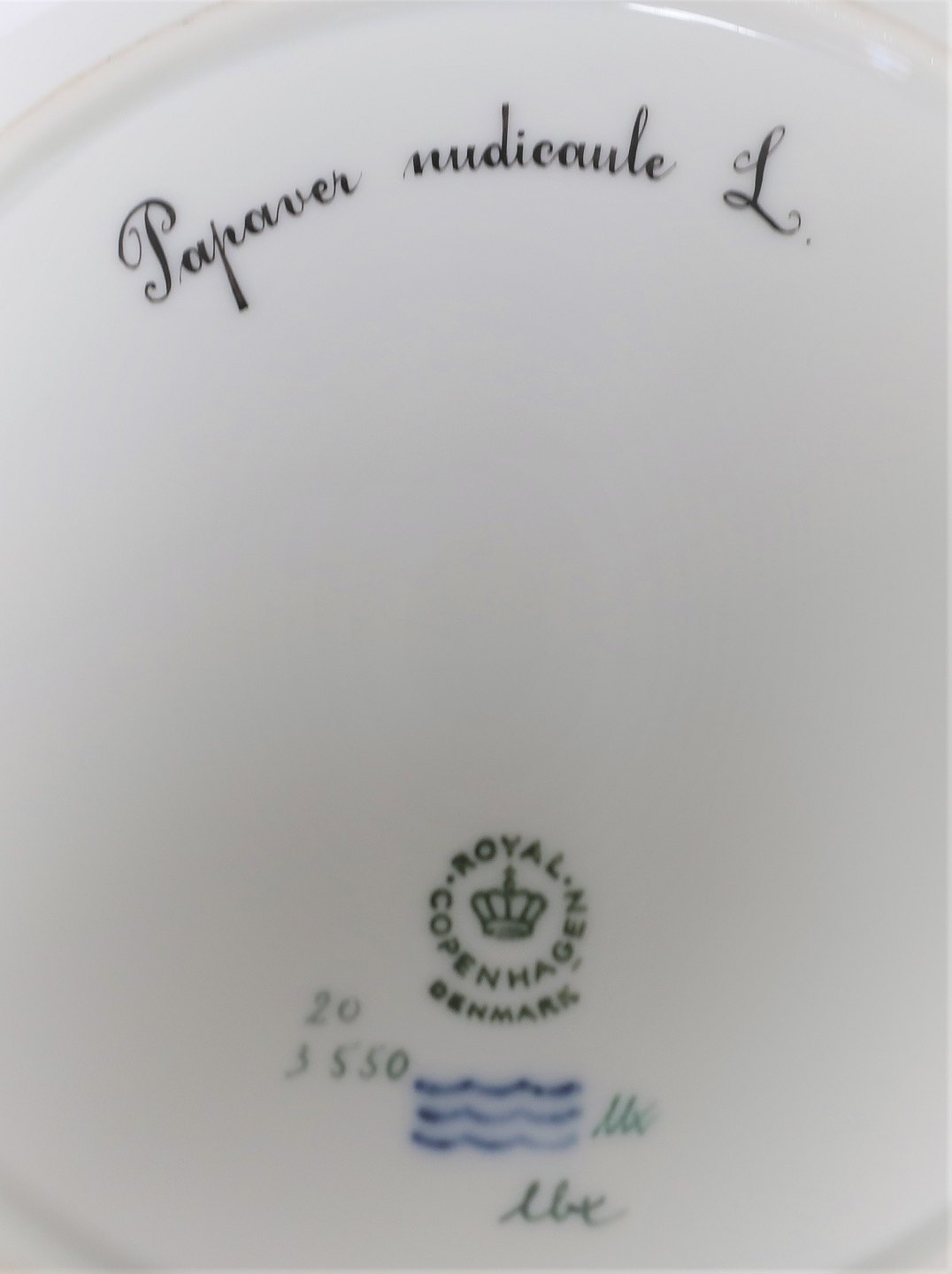 Royal Copenhagen, Flora Danica. Frokost tallerken. Design #3550. Diameter 22 cm. (1 sortering). Papaver nudicaule L