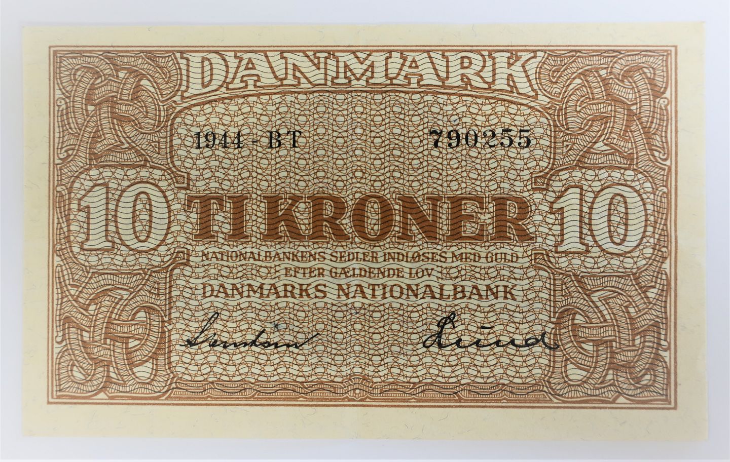 Danmark. Pengeseddel 10 kr. 1944 BT. Kvalitet 1+