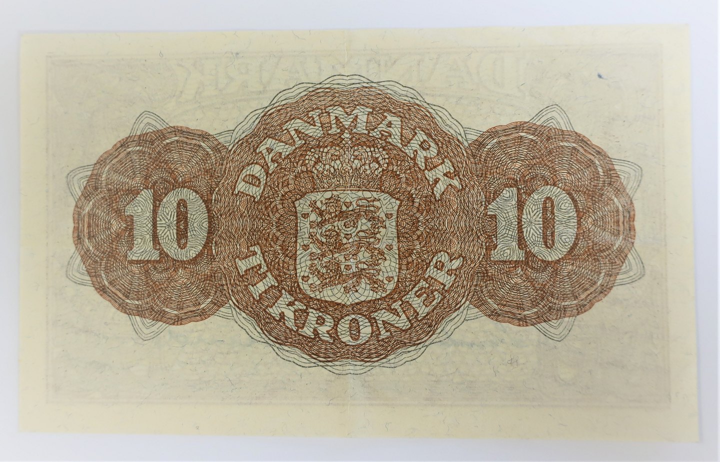 Danmark. Pengeseddel 10 kr. 1945 a. Kvalitet 1+