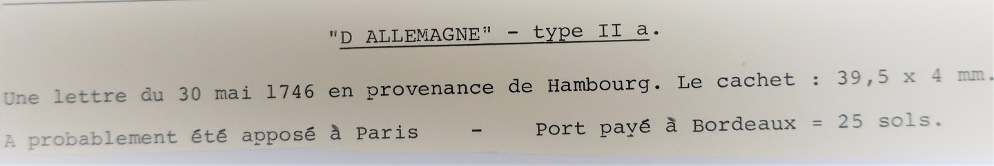 Brev fra Hamburg til Bordeaux. 30.05.1746 med D'ALLEMAGNE.