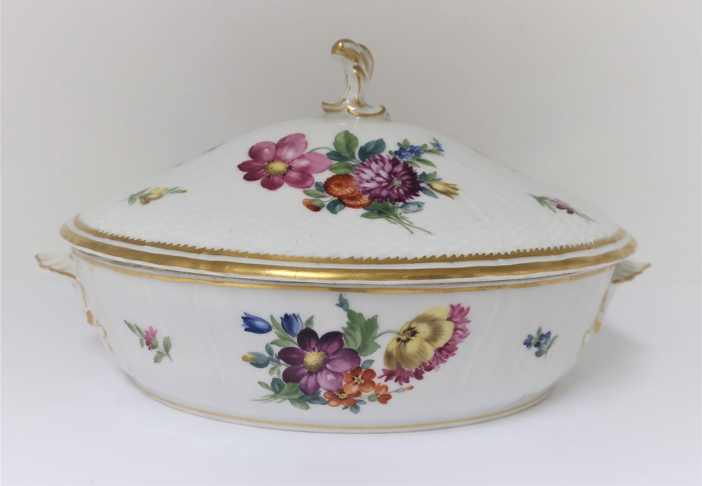 Royal Copenhagen. Saksisk blomst. Ovalt lågfad. Model 1702. Længde 27 cm. (1 sortering)