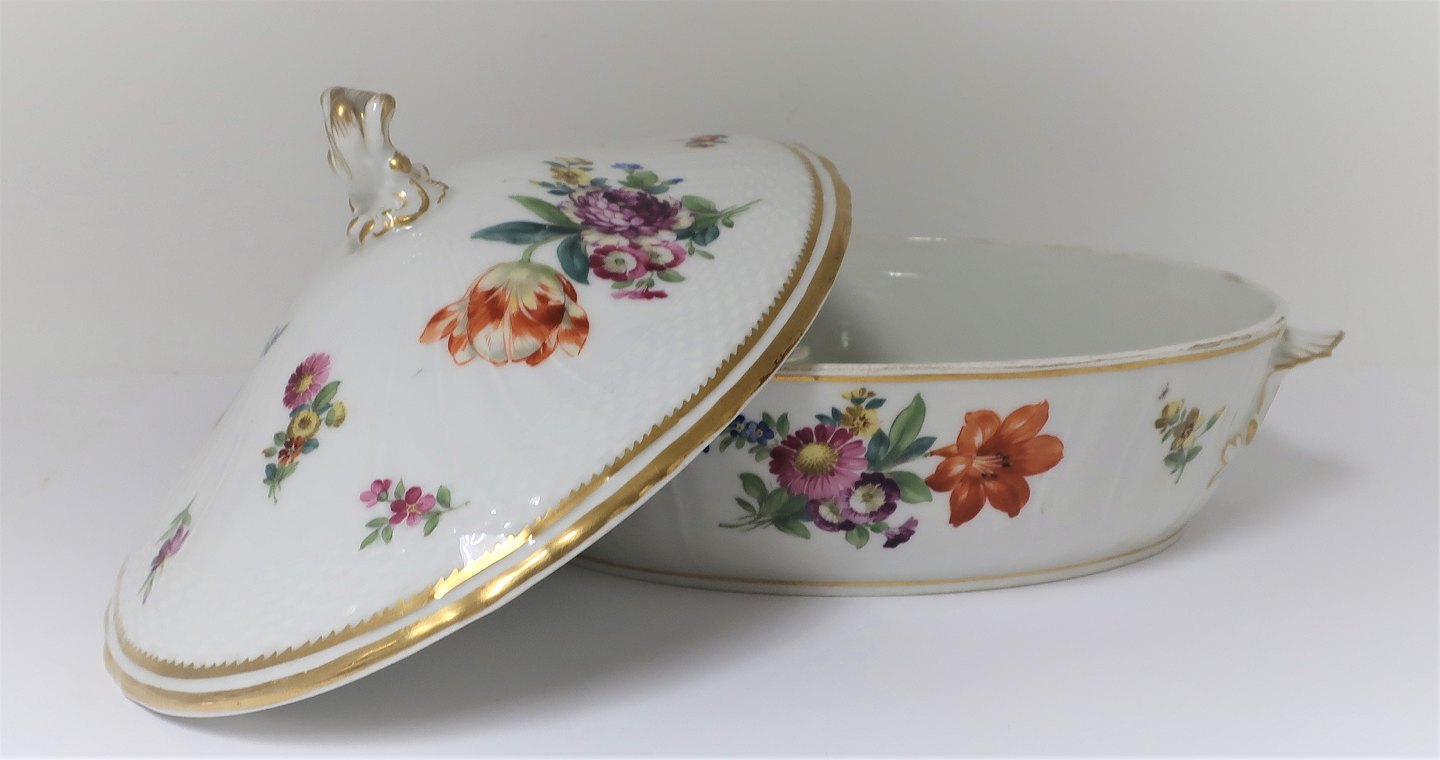 Royal Copenhagen. Blå Blomst kantet. Stor terrin.
