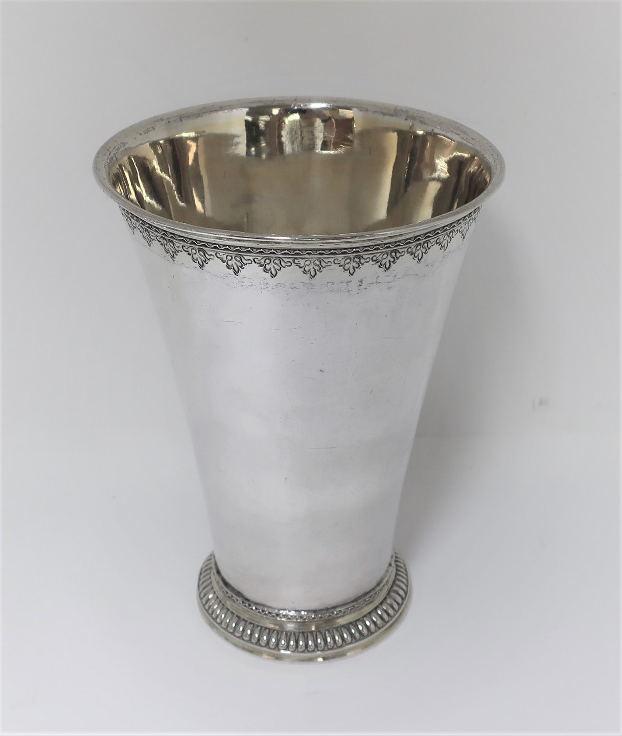 Lorens Stabeus, Stockholm. Stort svensk sølv bæger (830). Forgyldt indvendig. Højde 17 cm. Vægt 388 gram. Produceret 1752 (q)