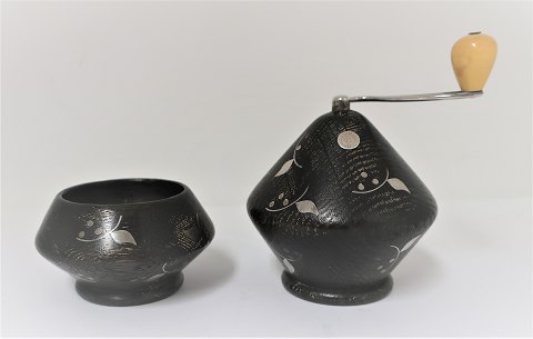 Peberkværn og saltkar med sølv (925) indlægning. S