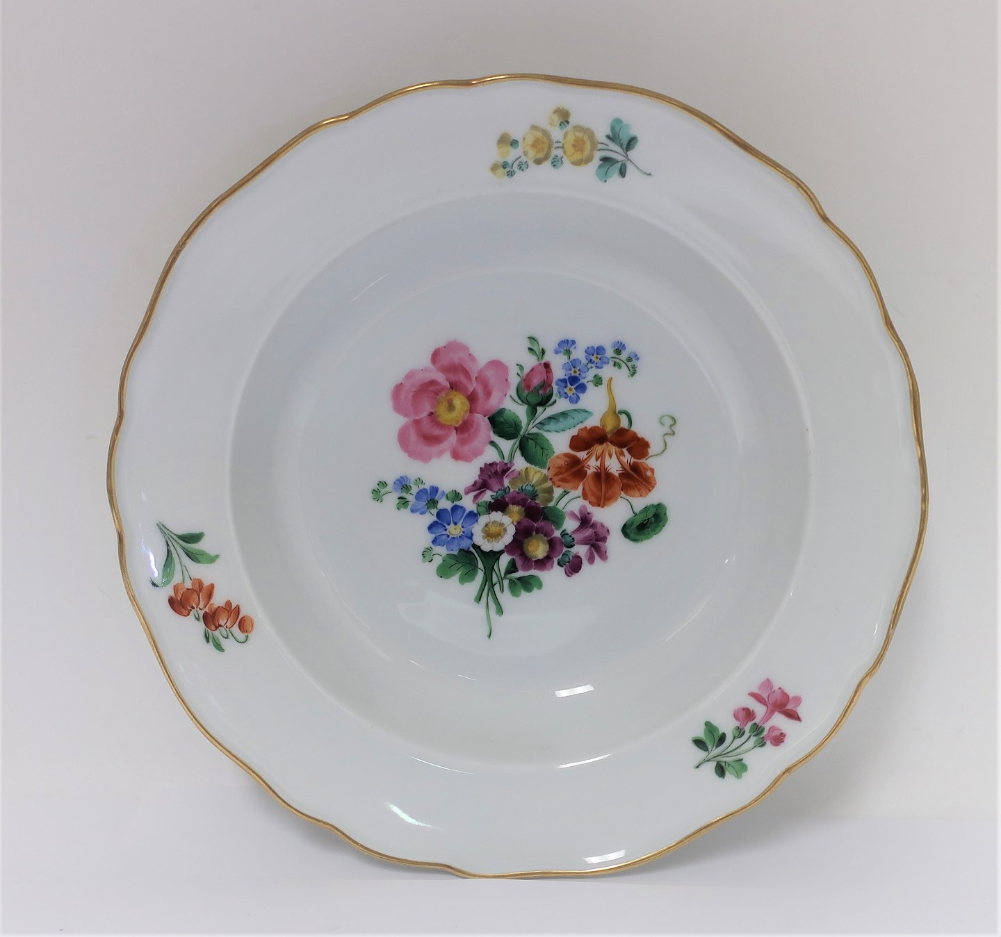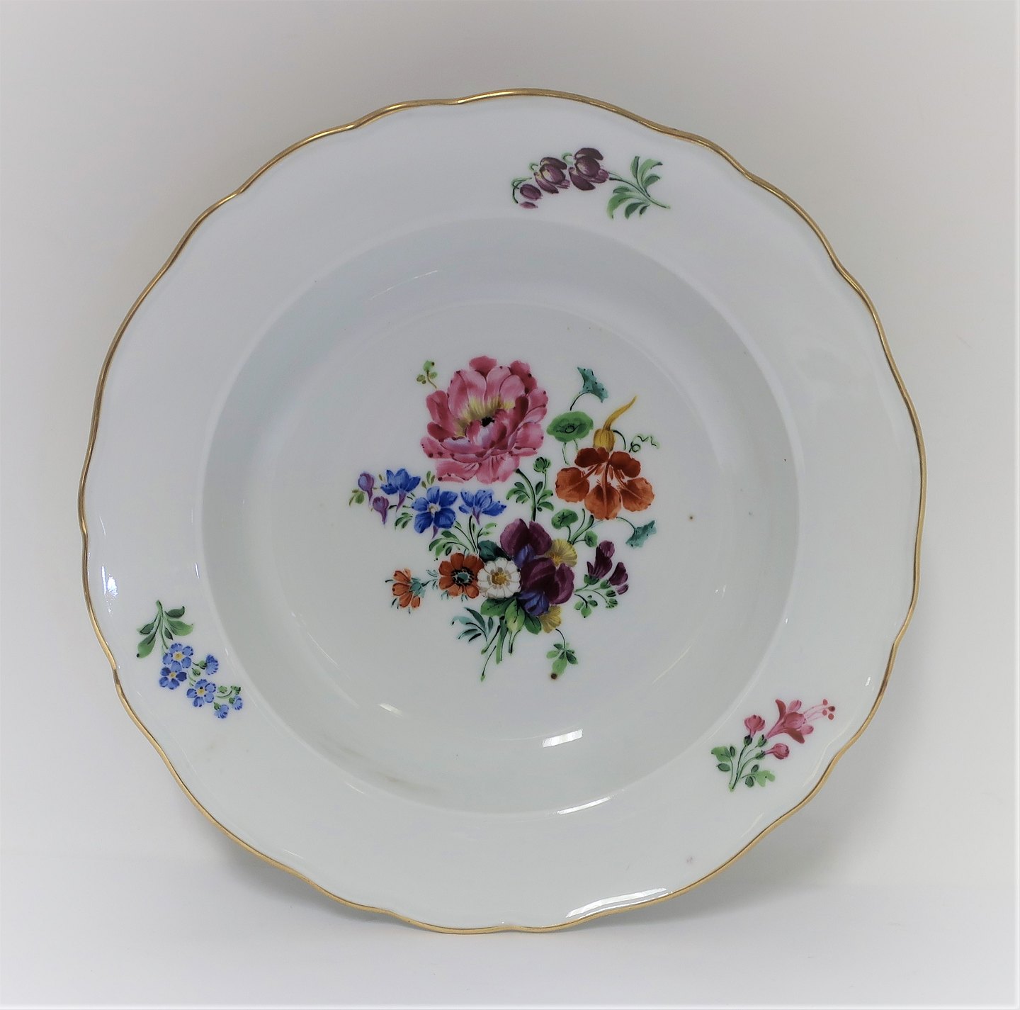 Meissen. Saksisk blomst. Dyb tallerken. Diameter 23 cm.