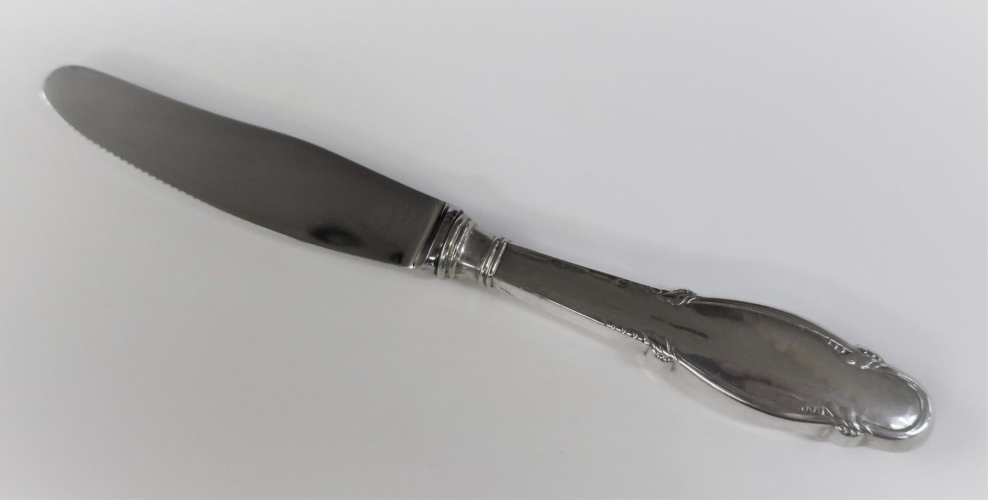 Frijsenborg. Sølvbestik (830). Middagskniv med grillskær. Længde 20,3 cm