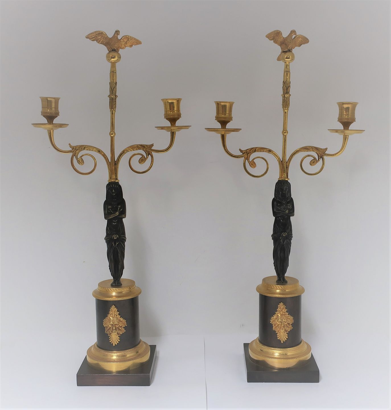 Empire bronze Candlesticks. Probably French about 1810. A pair. Height 48 cm.