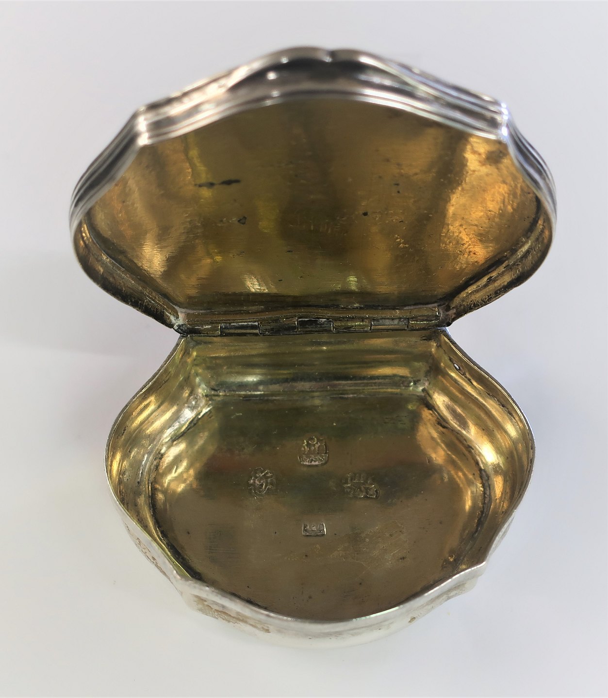 Joachim Hendrich Dysterdijk. Sølv Rokoko Snustobaksdåse (830). Bredde 5,4 cm. Længde 7 cm.