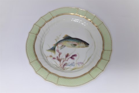 Royal Copenhagen. Fisketallerken med grøn kant. Mo