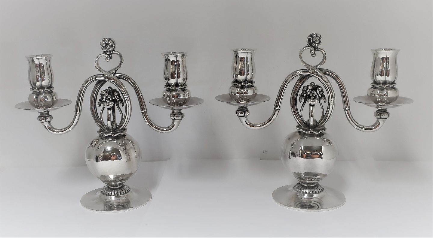 Georg Jensen. Sterling (925). 2 arm candlesticks. A pair. Model 324. Produced 1945-1977.
