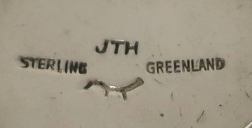Jens Tage Hansen. Stemplet JTH. Sterling vedhæng med grønlandsk motiv incl. kæde (925). Højde 62 mm. Bredde 35 mm