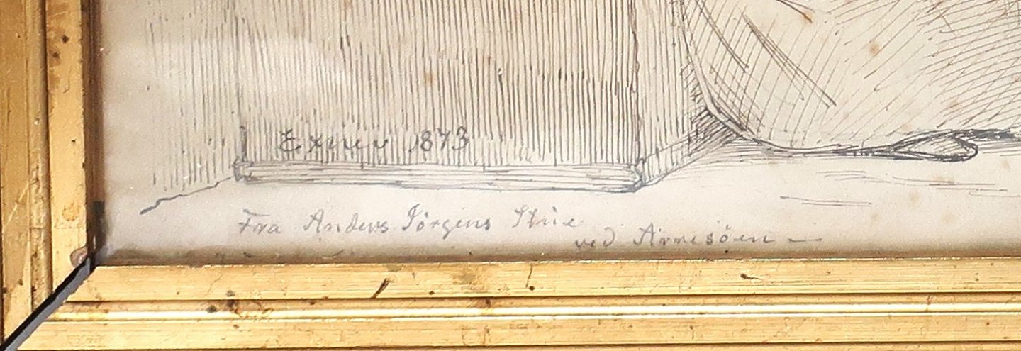 Julius Exner 1825-1910. Drawing. Wife with sleeping child. Signed Exner 1873. (From Anders Jörgen's living room by Lake Arresöen). Dimensions 35*24 cm.
