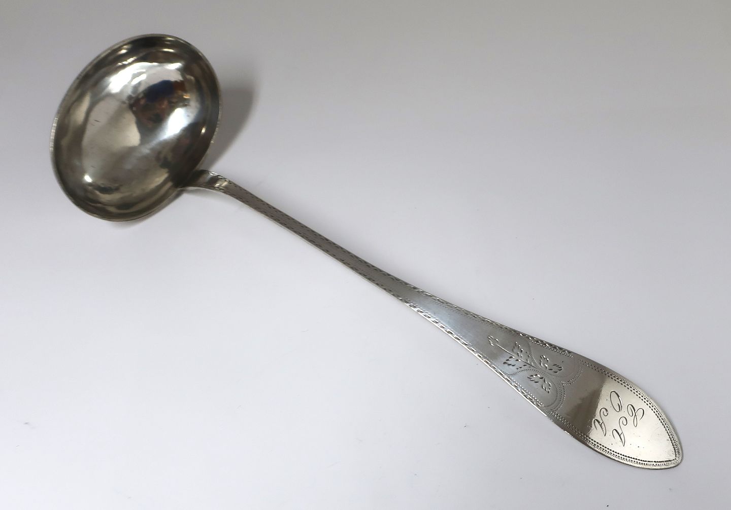 Christian Hosøe, København. ( CH ). Empire. Sølvbestik (830). Stor suppeøse. Længde 32 cm. Produceret 1805