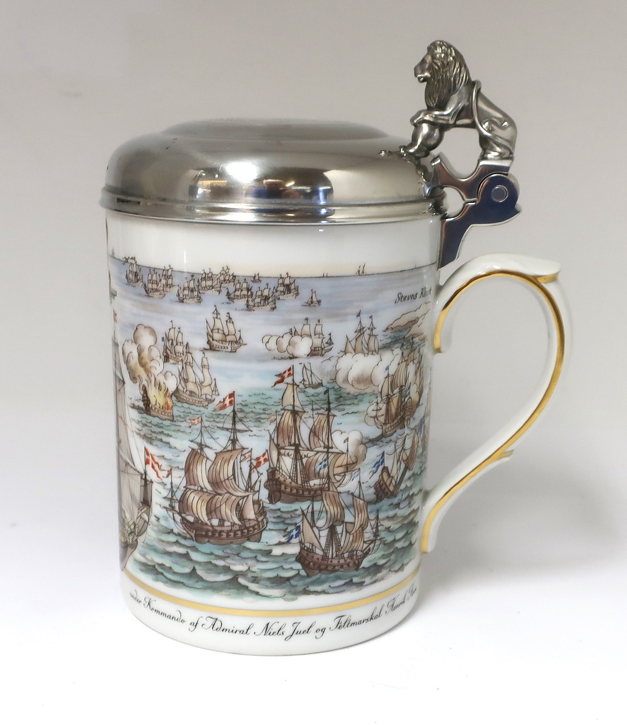 Royal Copenhagen. Niels Juel mug made on the occasion of the 300th anniversary of the Battle of Køge bugt 1677-1977. Height 21 cm. In original box.