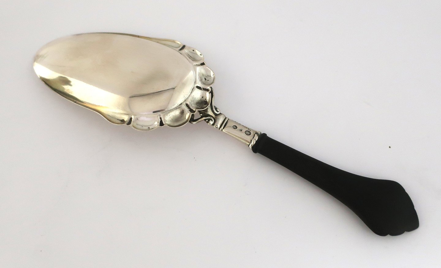 Cohr. Sølvbestik (830). Serveringsspade med træ håndtag. Længde 23 cm. Produceret 1927.