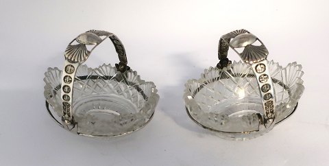 Crystal salt jar with silver mounting. A pair. Len