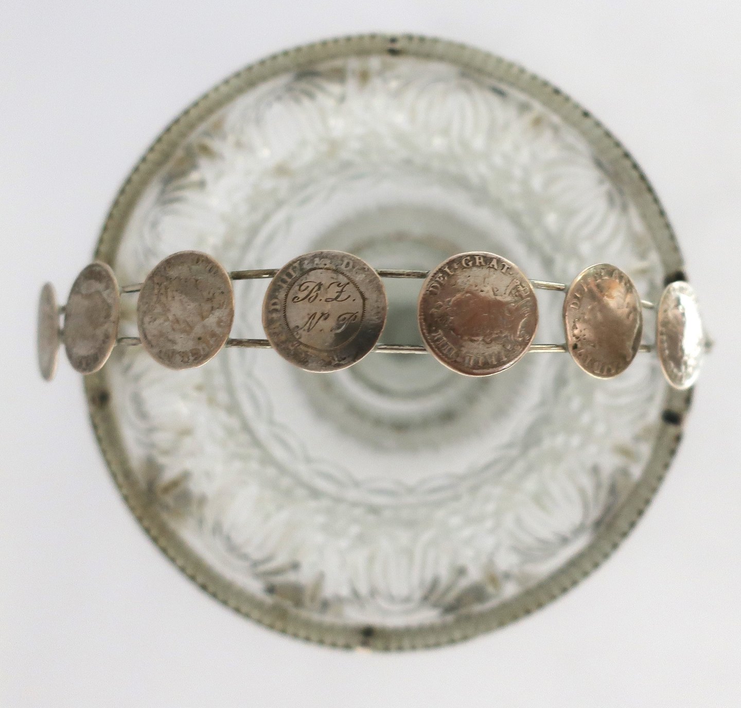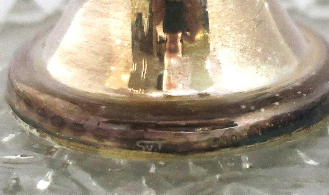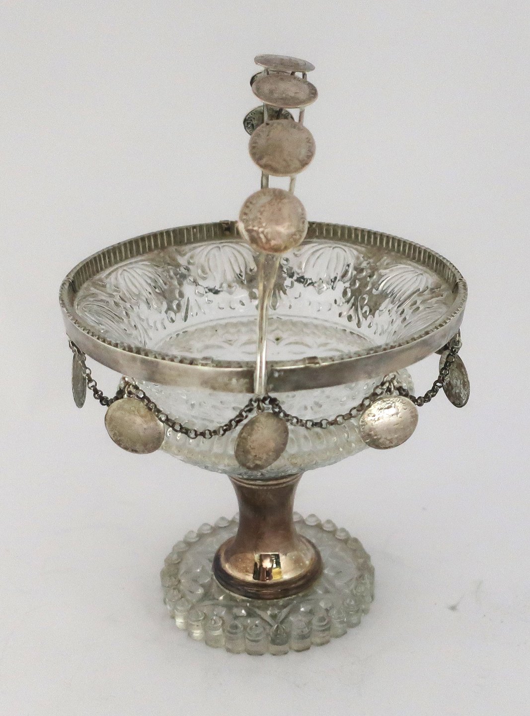 Glass stand with silver mounting with Danish and Norwegian silver 8 skillings.
