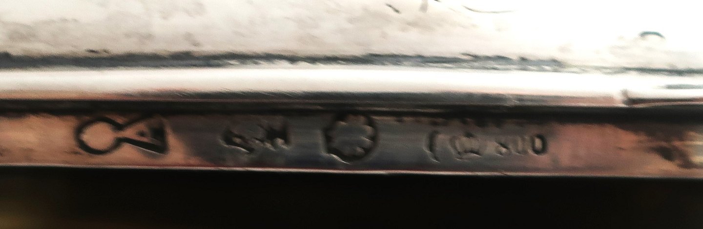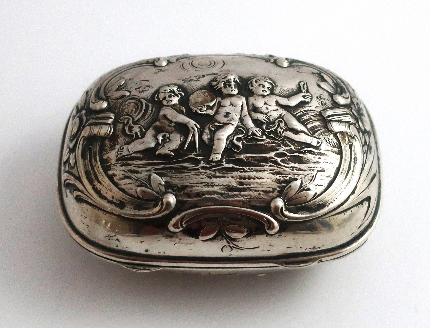 Tysk sølvæske (800). Længde 9 cm. Tykkelse 4 cm.