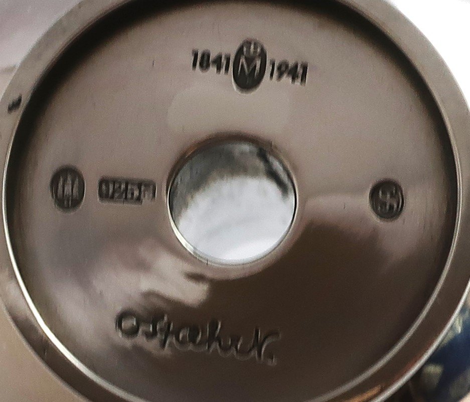 Michelsen. Sterling sølv kammerstage (925). Design Oluf Stæhr-Nielsen. Højde 9 cm. Produceret 1941