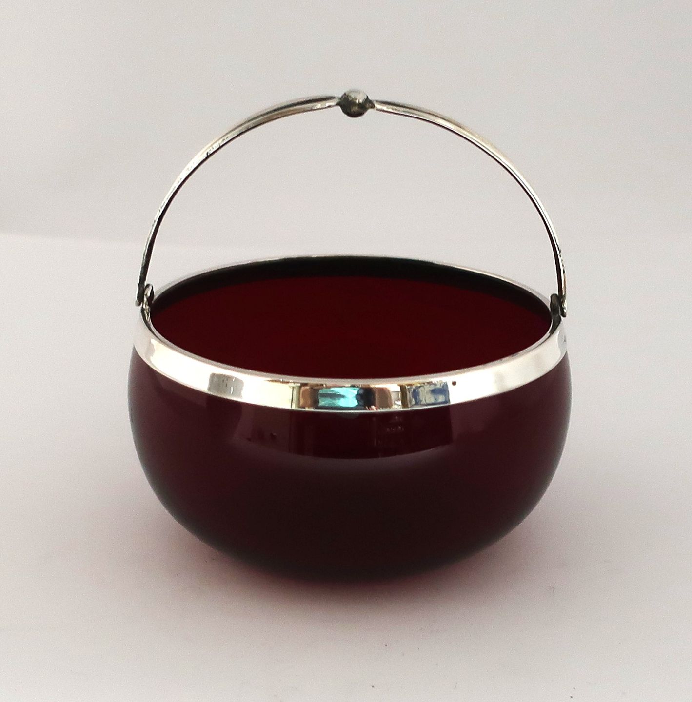 Svend Toxværd. Rød glasskål med sølv montering (830). Diameter 10,5 cm