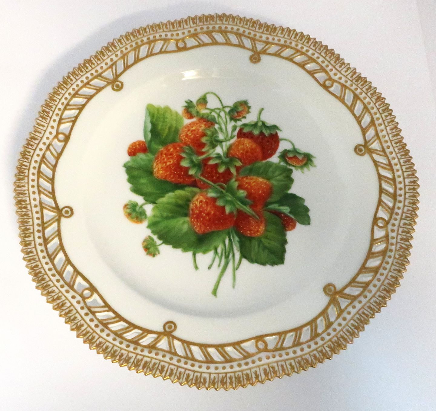 Royal Copenhagen Flora Danica, fruit plate. Lunch plate with open-work border. Design # 429/3554. Diameter 23 cm. (1 quality).