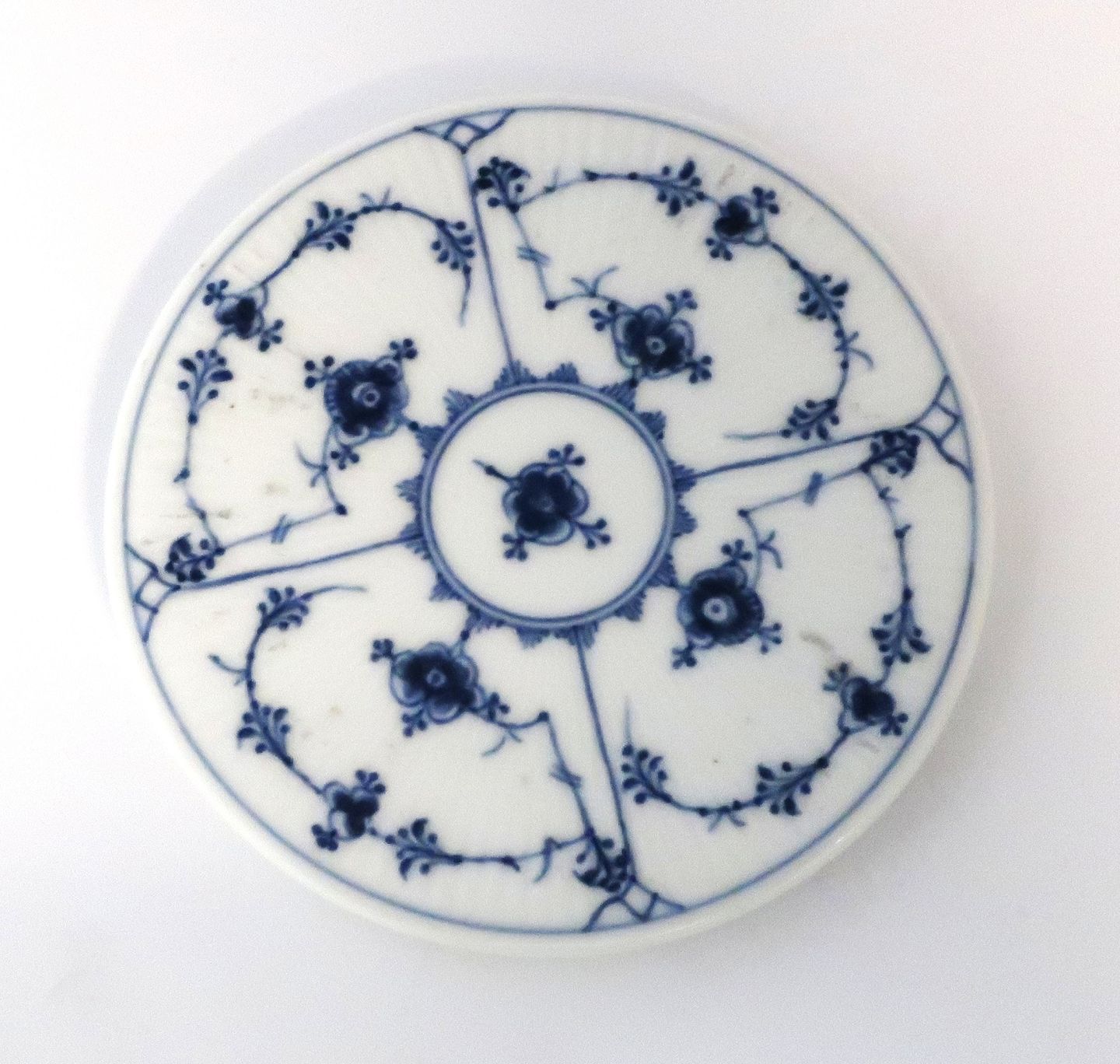 Royal Copenhagen. Musselmalet, riflet. Varmebrik. Model 452. Diameter 13 cm. (1 sortering). Produceret før 1923.