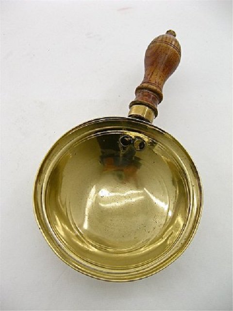 1800-tals messing glødeskål med træ håndtag dia. 11 cm.