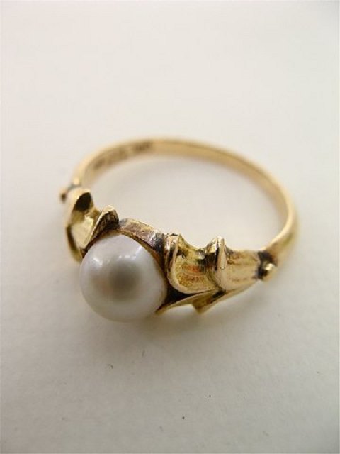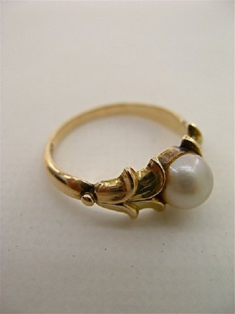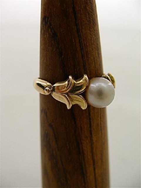 14 karat Evald Nielsen guld ring med ægte perle og original etui størrelse 53