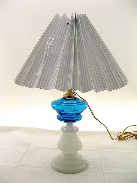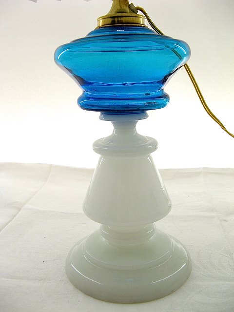 1800-tals opaline olielampe med blå beholder forandret til el.