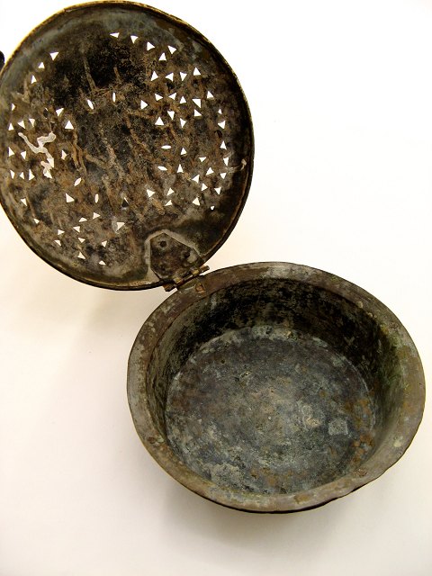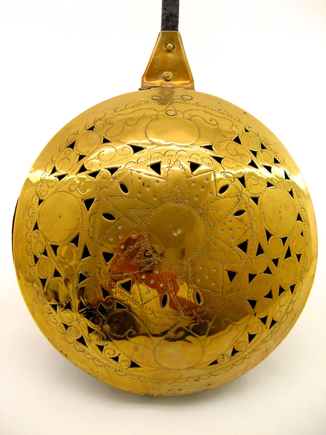 1800 Century brass pan with Danish stamps dia. 25 cm. long 90 cm. # 207751
