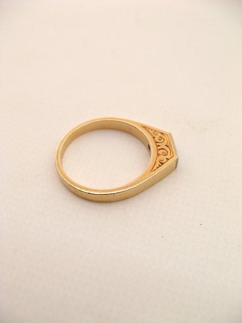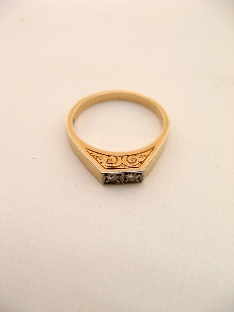 14 karat guldring med 2 diamanter fra guldsmed Jørgen Larse København størrelse 55-56 Nr. 215224