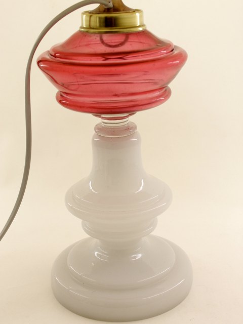 Opaline olie lampe 19. årh. H. 55 cm. senere forandret til el.