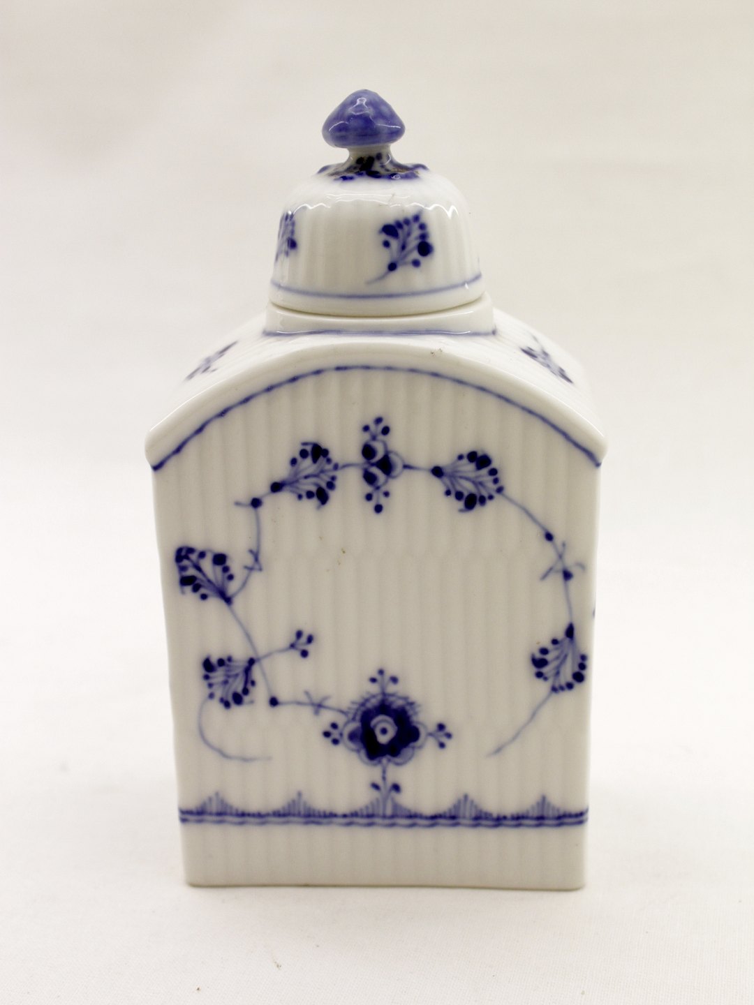 Royal Copenhagen musselmalet stor tedåse 1/262 1.sort.