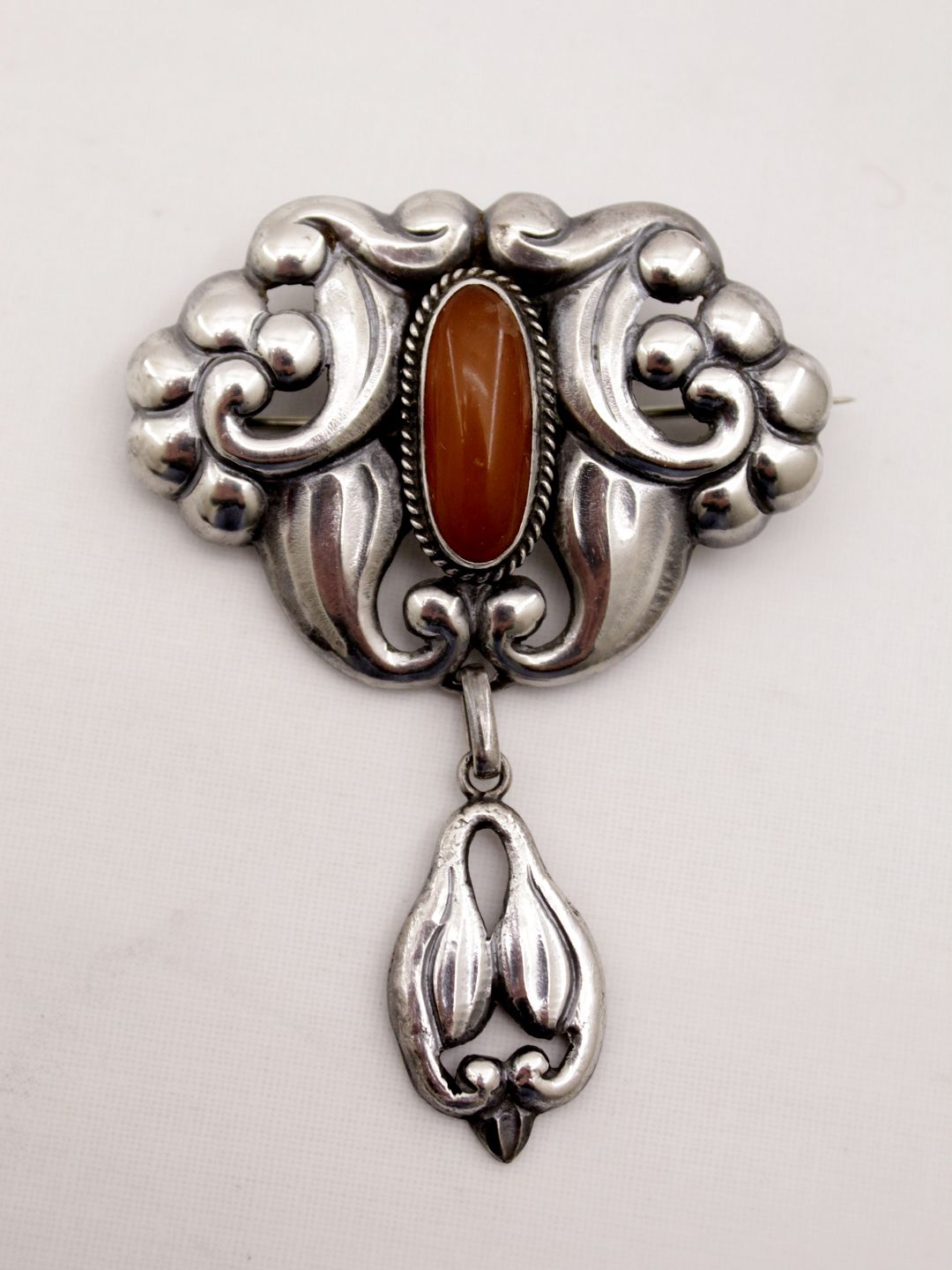 Jugend Broche 830 sølv 5,5 x 7,5 cm. med rav Nr. 286107
