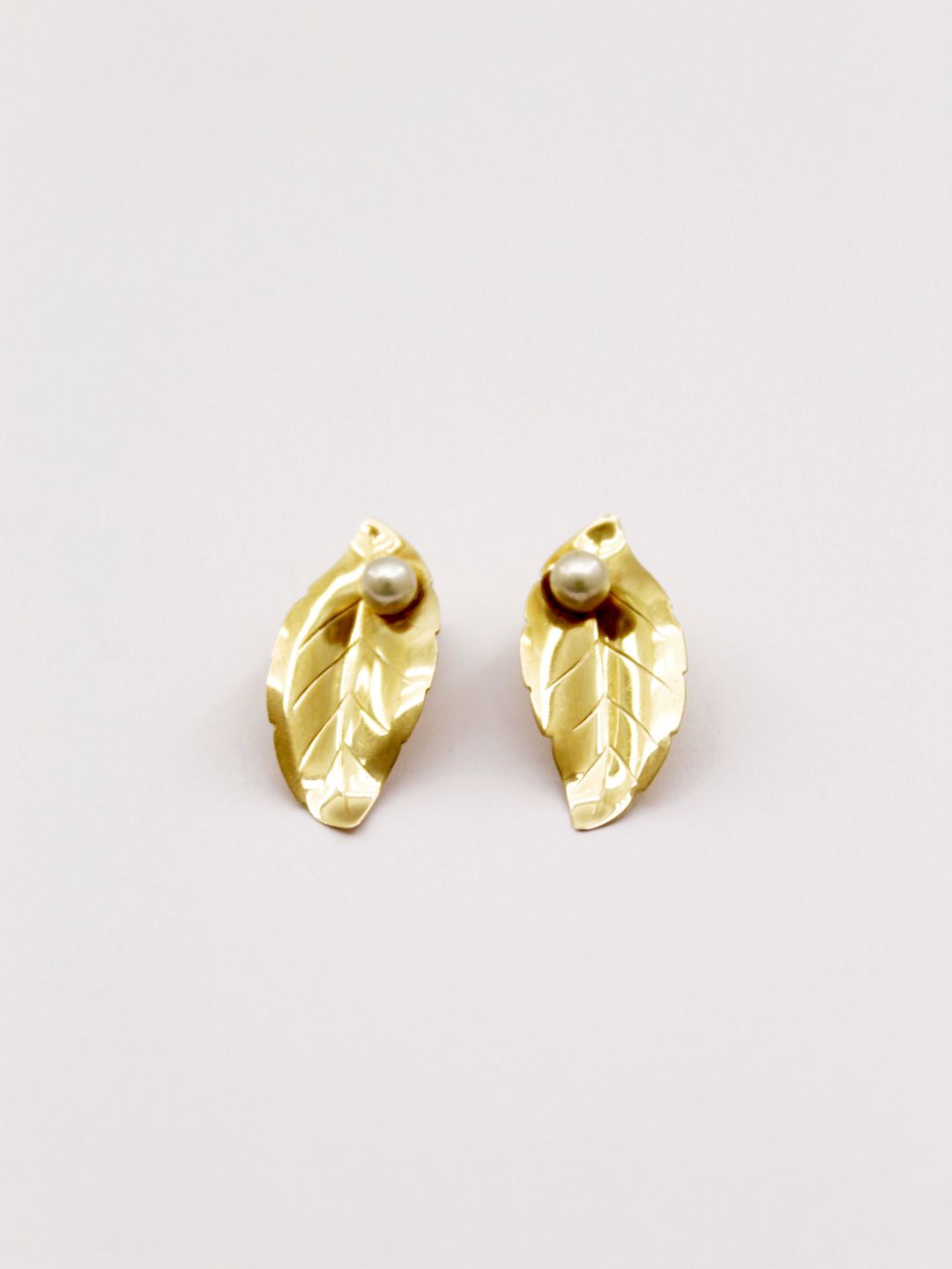 Goldsmith Viggo Wollny Copenhagen 14 carat ear clips 1 x 2.2 cm. with real pearl No. 287043