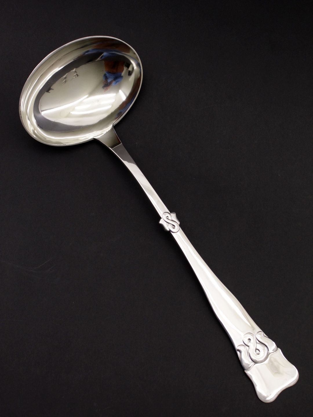 Tretårnet sølv Frederik D. VIII stor serveringsske L. 33,5 cm.