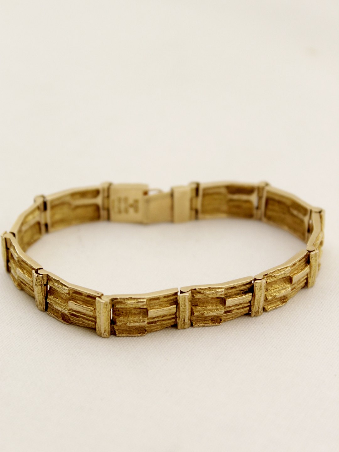 14 karat guld Lapponia armbånd år 1971 L. 18,2 cm. B.1 cm. V. 27 g. stemplet Bjørn Wekstrom Finland Nr. 307825