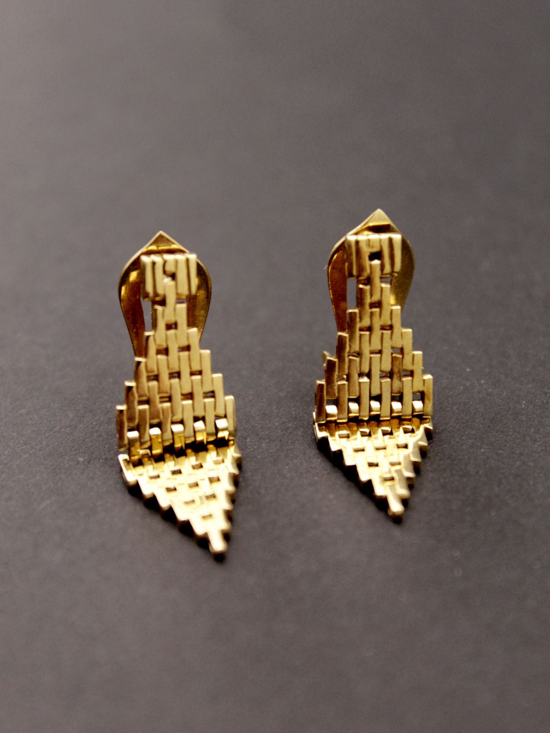 14 karat brick ear clip 3.5 x 1.1 cm. Stamped 585 SVG for jeweler S V Glymers Copenhagen Nr. 310143