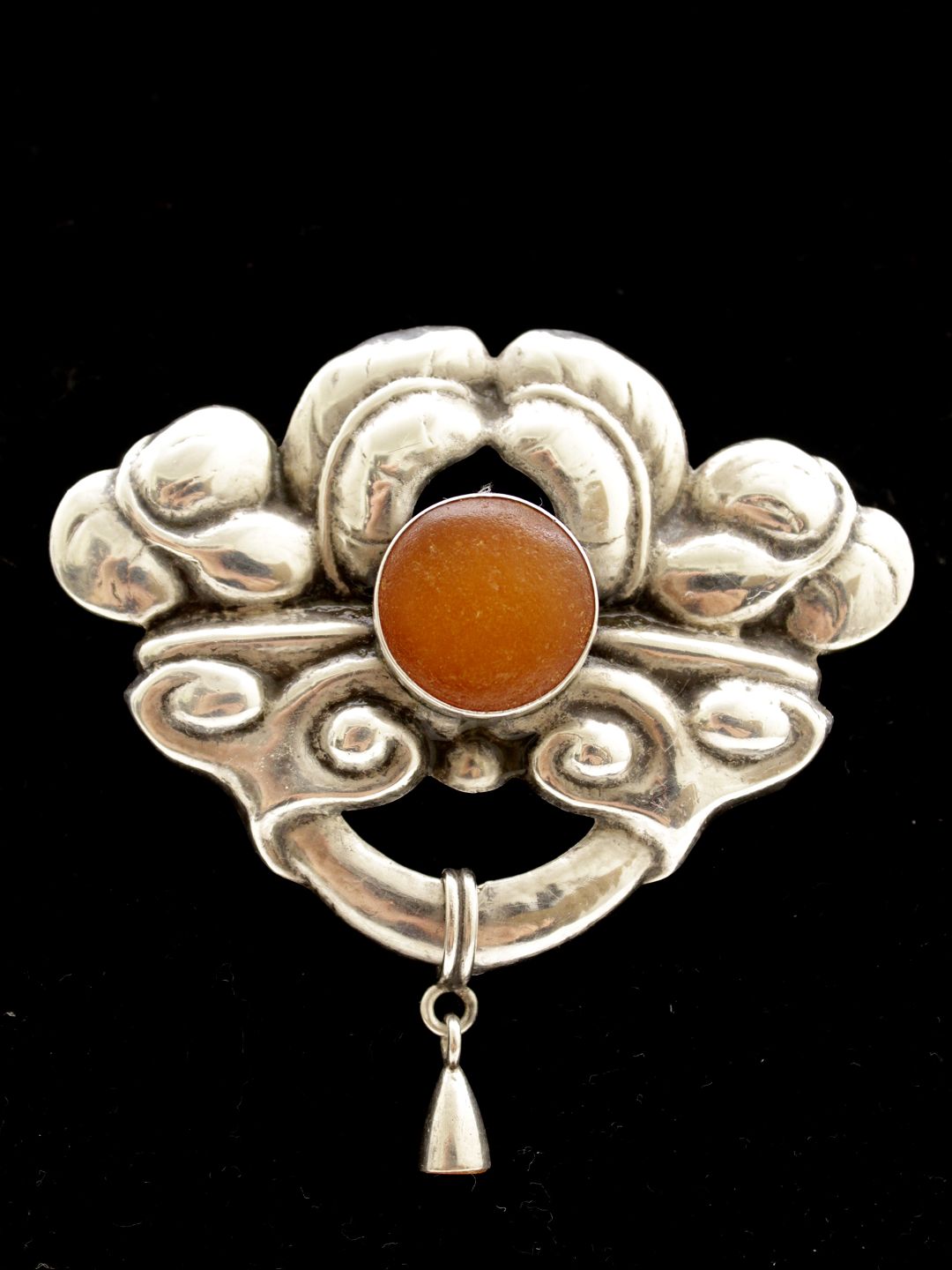 Jugend broche 6,7 x 6,5 cm sølv med rav stemplet 826s BH for sølvsmed Bernhard Hertz Nr. 313169