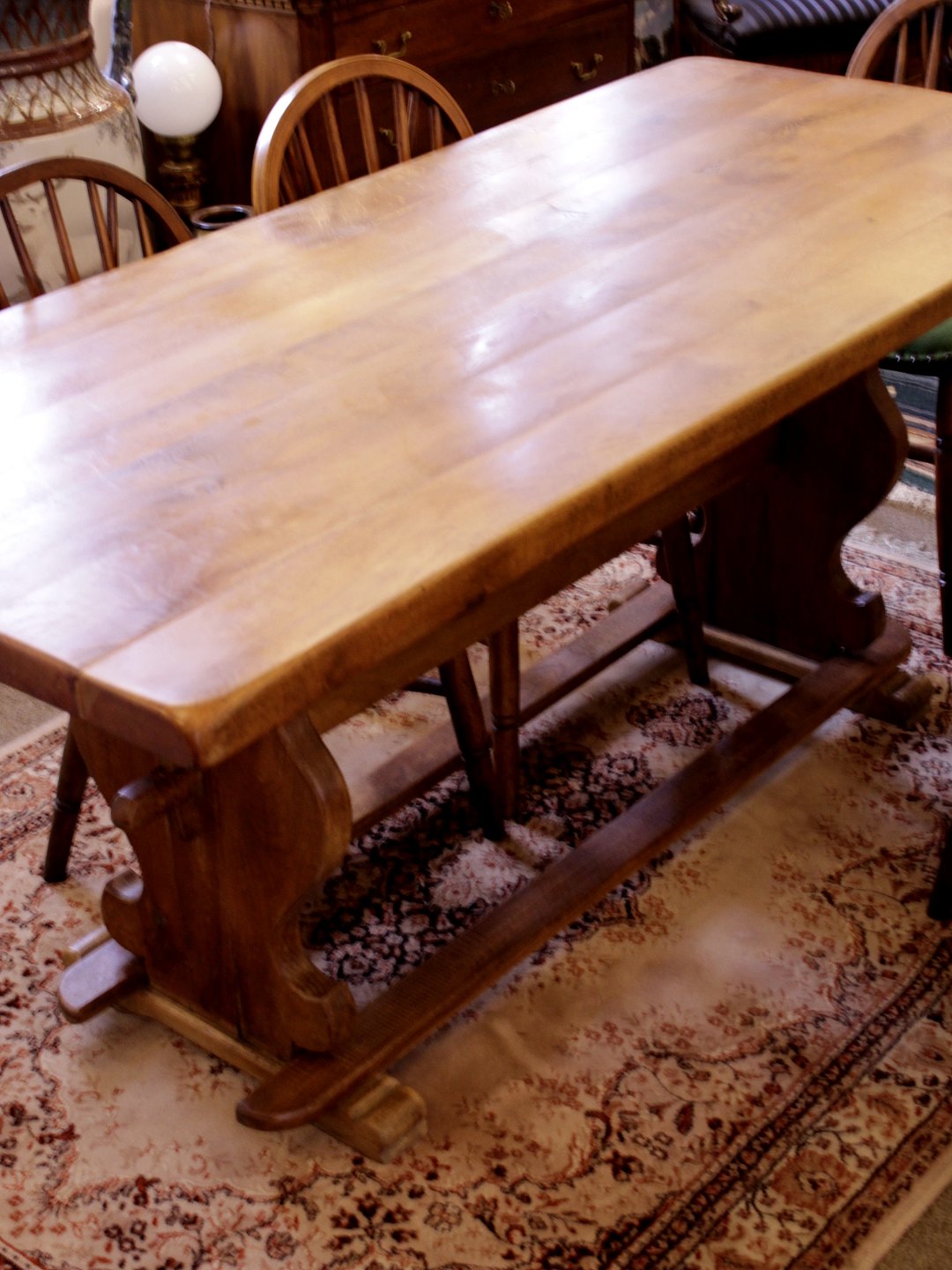 Almue egetræs langbord 178 x 78 cm. med 6 pub stole